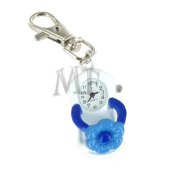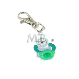 Une belle montre porte clé tortue, couleur aluminium brossé. Poids idéal pour une bonne sensation en poche, une simple pression sur les antennes et les ailes s’ouvrent pour afficher l’heure. cadran analogique sur fond blanc.