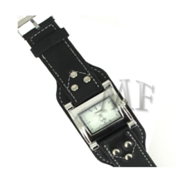 Montre femme bracelet large, couleur noir et clous argenté. Une montre au style assumé!