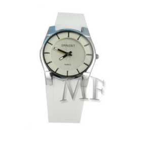 Montre silicone ATHENA, couleur blanche. Cadran métal, fond nacré. Une très bonne lecture de l’heure. Une montre fine et design. solide.