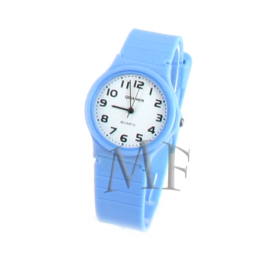 PINTO, une montre bracelet silicone haute densité de couleur bleu clair. Un montre légère et étanche. Cadran analogique haute lisibilité de l’affichage