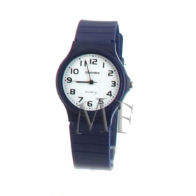 PINTO, une montre bracelet silicone haute densité de couleur bleu foncées. Idéal en extérieur, légère et étanche. Cadran analogique et mécanisme quartz.