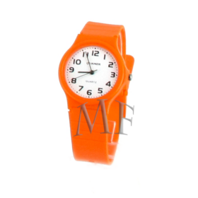 PINTO, une montre bracelet silicone haute densité de couleur orange, toute légère et étanche, avec un cadran analogique très lisible