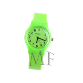 PINTO, une montre bracelet silicone haute densité de couleur vert flashy. idéal pour la pratique sportive. Un montre légère et étanche. Cadran analogique et mécanisme quartz.