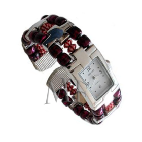 Véritable coup de coeur, montre femme type bracelet incrustée de perle de bois rouge et prune, très originale et mode. Des tons chauds pour l’un de nos plus beaux modèles. Une monte ethnique et moderne, se portera toute la journée et fera votre fierté.