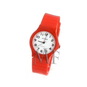 PINTO, une montre bracelet silicone haute densité de couleur rouge, avec un cadran très lisible.