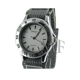 Montre mixte, bracelet toile fermeture velcro, gris anthracite, boitier look acier brossé, vraiment moderne et sportive.