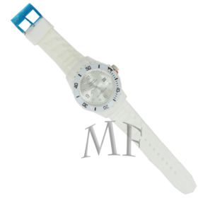 Superbe montre bracelet PVC, couleur blanche, étanche 3 ATM, bague rotative avec marquage fonctionnelle