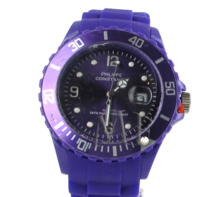 Montre sport étanche avec bracelet silicone bleu, signée Philippe Constance.
