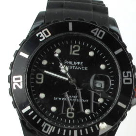 Montre sport étanche avec bracelet silicone noire, signée Philippe Constance.