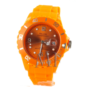 Montre sport étanche avec bracelet silicone orange, signée Philippe Constance.