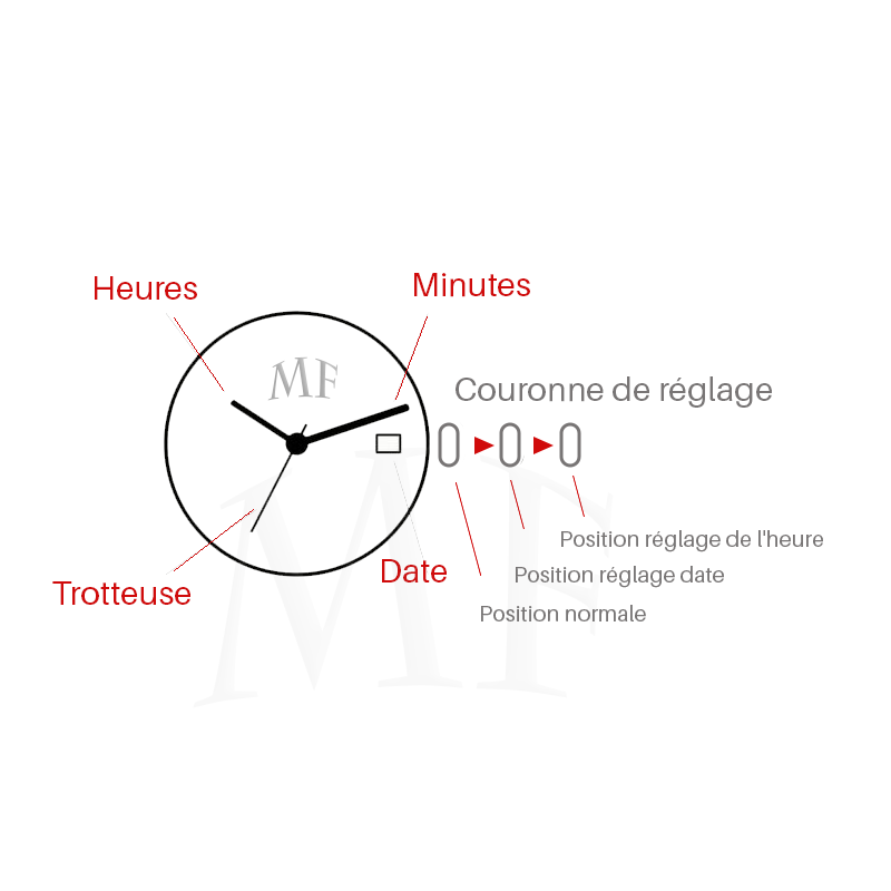 Le réglage du dateur s’effectue via la couronne, souvent dotée d’une position intermédiaire spécifique. En tirant cette couronne, l’utilisateur peut ajuster séparément la date ou l’heure, selon le besoin. Précis et ingénieux, ce mécanisme témoigne du savoir-faire horloger, conjuguant précision mécanique et esthétique pour offrir une complication à la fois pratique et élégante.