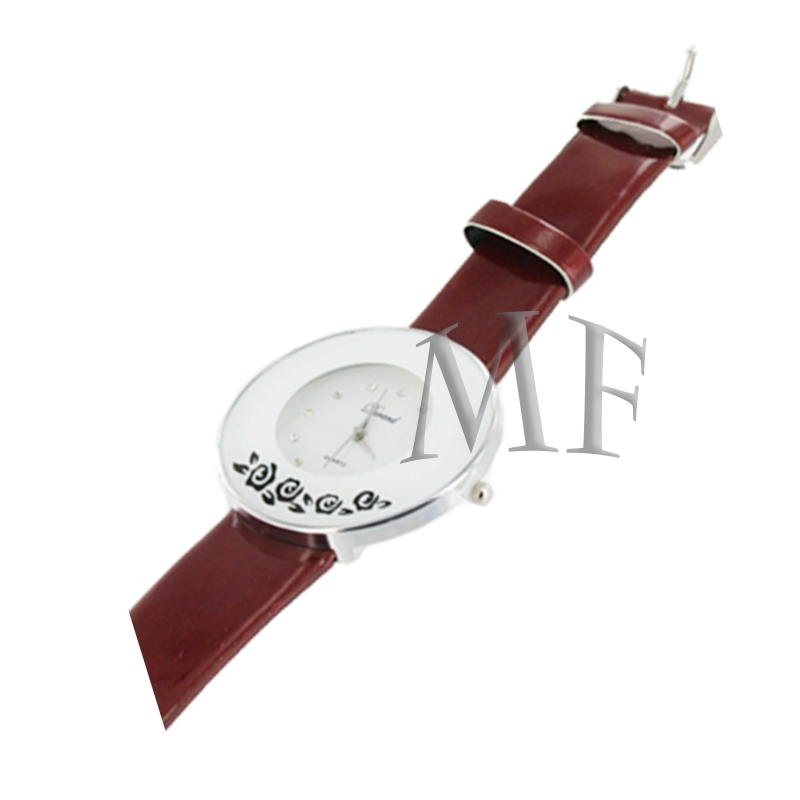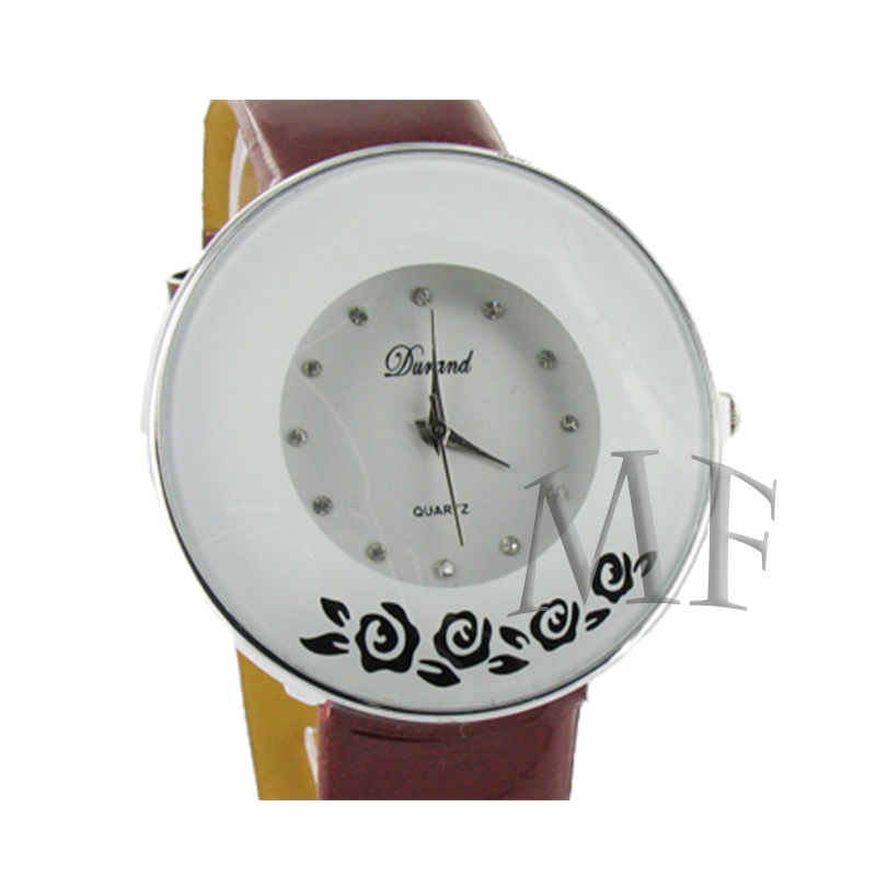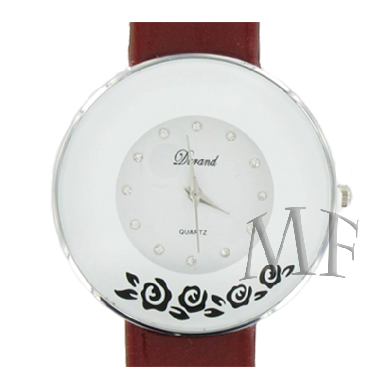 Fontainebleau, montre bracelet avec cadran à motif floral, bracelet bordeaux
